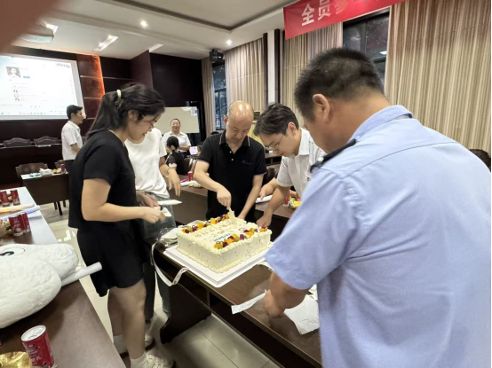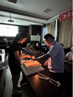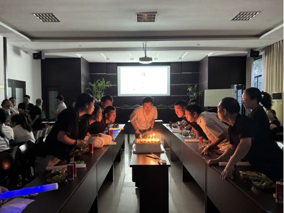 在溫馨的氛圍中,大家圍聚在蛋糕前,共同唱響生日歌。歌聲悠揚,傳遞著對壽星們最誠摯的祝福。壽星們閉上眼睛,雙手合十,許下了美好的心愿。那一刻,時間仿佛靜止,整個會場充滿了溫暖與感動。隨后,現(xiàn)場的主管們將一份份生日蛋糕分發(fā)到各位壽星手上,大家品嘗著甜蜜的蛋糕,分享著此刻的喜悅,幸福的味道在舌尖蔓延。
