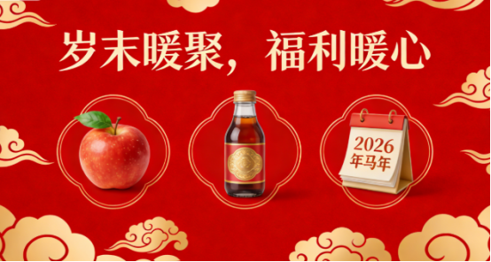 歲末送暖,情暖人心。在這滿載期盼的日子里,公司始終銘記著每一位佳人的辛勤付出,特意精心籌備了暖心福利,為大家的新春增添一份歡喜與底氣——清甜爽口的蘋果,寓意著新一年平安順遂、喜樂無憂;滋潤可口的飲料,驅(qū)散一年的疲憊,留存滿心的甘甜;還有印滿美好期許的掛歷,一頁一頁,承載著我們對2026馬年的無限憧憬,記錄下未來每一段并肩前行的時光。